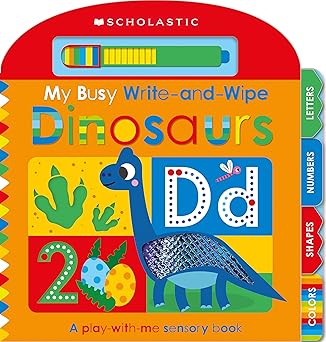 Reusable write-and-wipe activity book about dinosaurs that reinforces early writing skills.