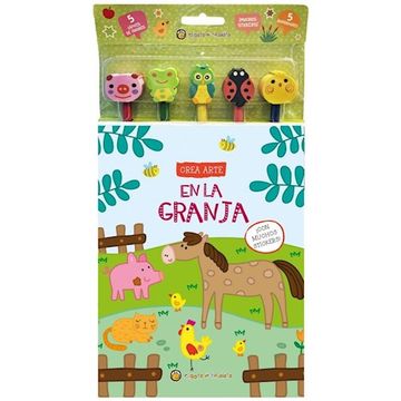 Libro infantil con accesorios incluidos para colorear y aprender vocabulario relacionado con la granja.