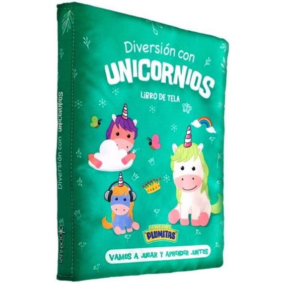 Libro de tela suave para bebes con ilustraciones de unicornios.
